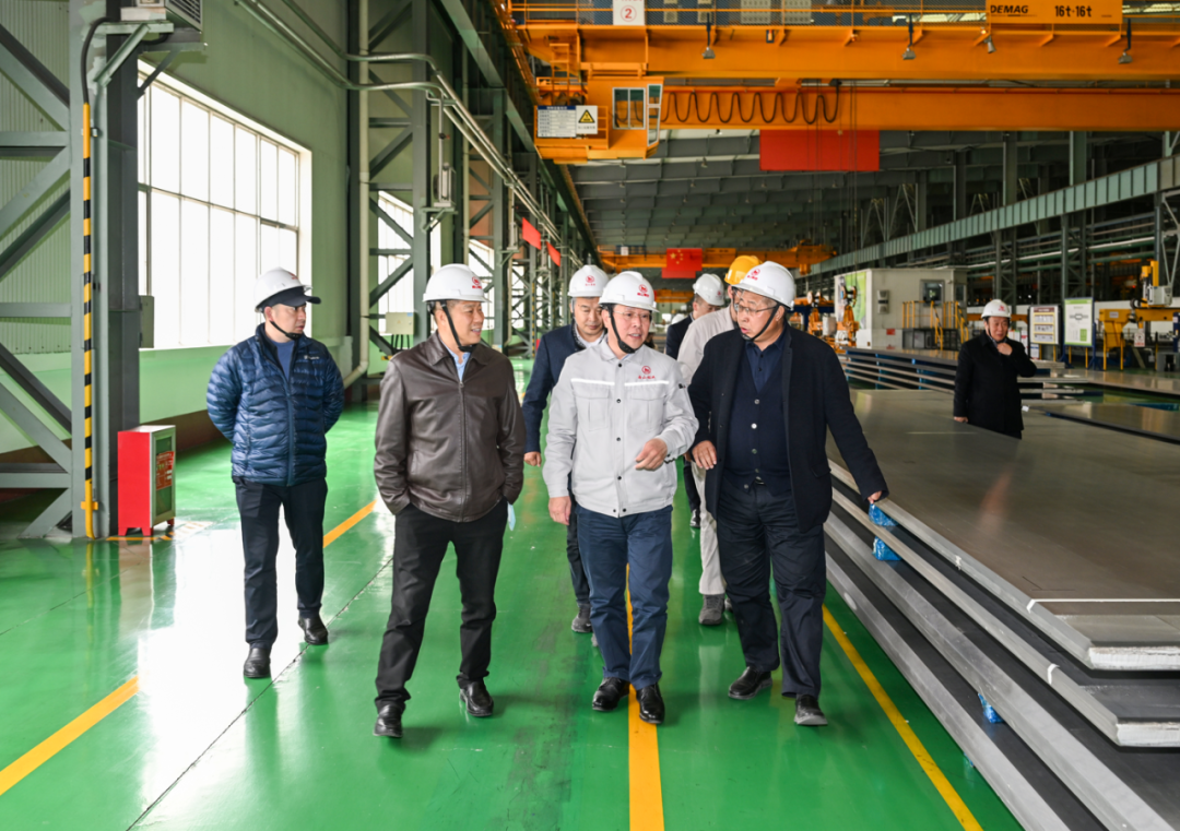 范順科一行實地參觀了板帶事業(yè)部板材廠、鋁材150MN擠壓車間以及航材園展廳等地,對南山鋁業(yè)的產(chǎn)品結(jié)構(gòu)、應(yīng)用領(lǐng)域等方面都有了進一步的了解。