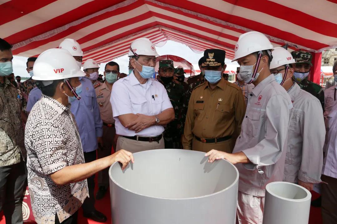 7月2日上午,印尼賓坦氧化鋁有限公司迎來貴客,印尼海洋統(tǒng)籌部長盧胡特(Luhut Binsar Panjaitan)、印尼海洋和漁業(yè)部長艾迪?布拉博沃(Edhy Prabowo)一行蒞臨視察,廖內(nèi)群島省代省長伊思迪安托(Isdianto)、賓坦縣縣長阿普力?蘇佳迪(Apri Sujadi)、公司領(lǐng)導(dǎo)郝維松、張國燈等陪同視察。