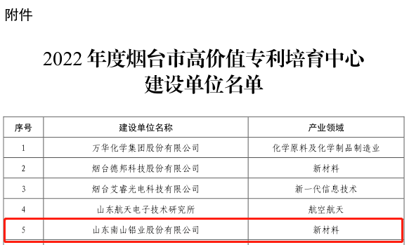 近日,煙臺(tái)市市場(chǎng)監(jiān)管局發(fā)文公布了全市15家“2022年度煙臺(tái)市高價(jià)值專利培育中心建設(shè)單位”名單,經(jīng)技術(shù)中心和南山鋁業(yè)聯(lián)合申報(bào)、區(qū)市推薦、市局審核并公示等程序,南山鋁業(yè)成功獲批煙臺(tái)市高價(jià)值專利培育中心建設(shè)單位。